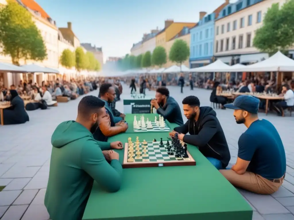 Escena vibrante de plaza pública sostenible con diversidad de actividades comunitarias